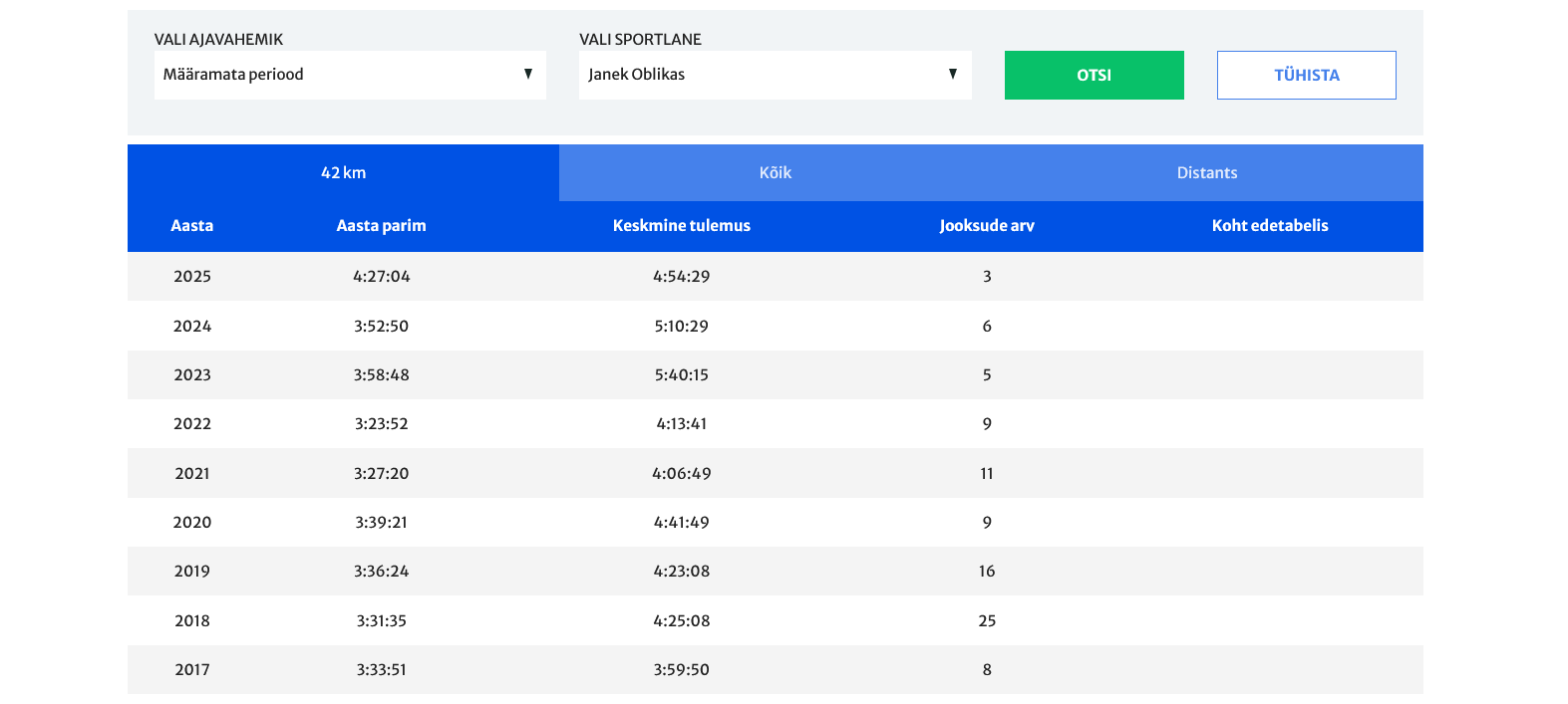 Kas teadsid, et sa saad Marathon100 veebis vaadata ka oma tulemuste iga-aastast muutumist?