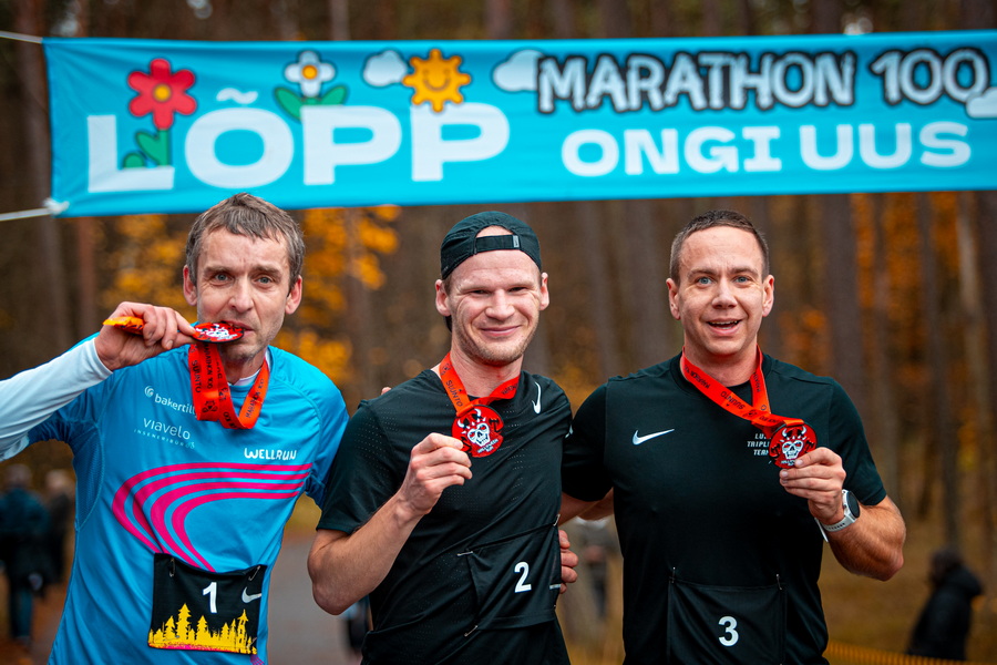 Maratonis võttis veenva võidu kolmest tunnist kiiremini jooksnud Ahti Nuga (2.49.56, all fotol). Teise koha võttis Ergo Meier (3.26.30) ning kolmanda Marden Nõmm, tulemuseks 3.28.47.
