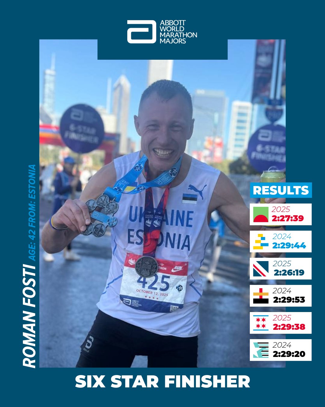 Ühtlasi sai Roman Fostist alles 28-s eestlane, kes on kõik kuus suurmaratoni lõpetanud. Lisaks talle oli enne Chicago maratoni viis „tähte“ veel 21-l Eesti jooksjal.
