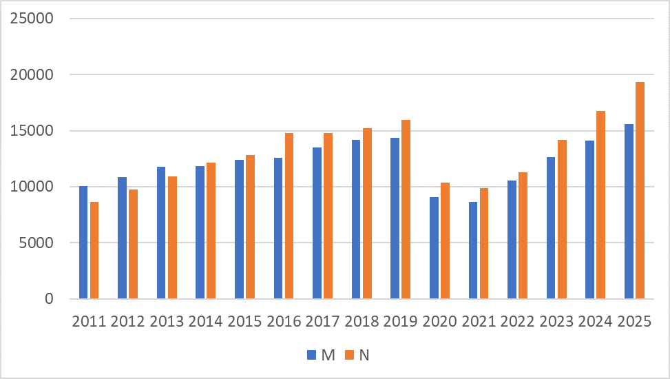 Nimelt moodustasid naised 2025.a. rahvajooksude osavõtjaskonnast koguni 55%, absoluutnumbrites on naisi rajal koguni 25% võrra rohkem kui mehi.